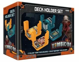 The Zombicide Invader Deck Holders set includes four Deck Holders made out of durable plastic, separated into two different colors. The construction of the Deck Holders allows them to hold either 190 unsleeved cards, or up to 105 sleeved cards.
