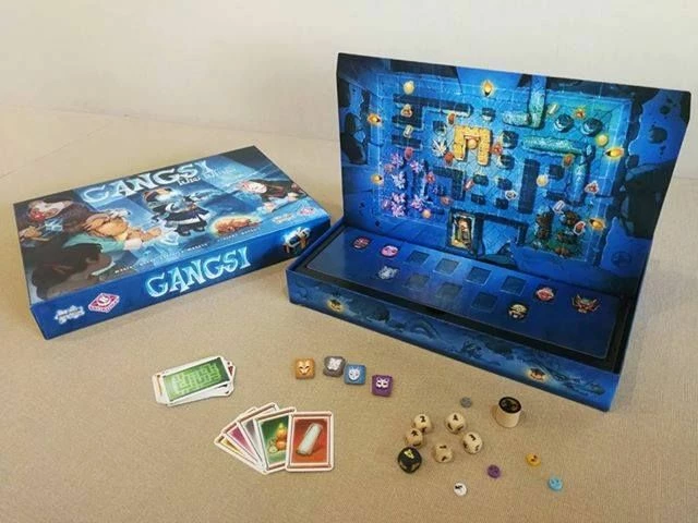 One player will act as the Gangsi, and the other will be the treasure hunters. The hunters find the treasures on one side of the board, while Gangsi find the hunters on the order side, which means that Gangsi does not know where the are hunters. Gangsi can only deduce the position of hunters by the moment when hunters announce they find the treasures.