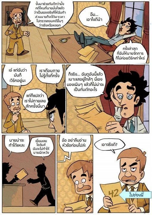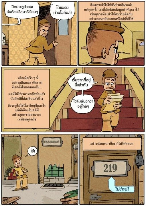 Sherlock Holmes: Four Investigations is a comic combined with a game, one title in a series subtitled “The comic in which you are the hero”. You embody a character in a immersive story in which your choices guide your progress. You have a character sheet akin to those used in role-playing games that tracks your possessions, your special abilities, your coins, and your victory points. In general, gameplay consists in following the comic’s panels — which contain clues, riddles and traps — and making choices about where to go and what to do, while using your visual perception to collect clues and be smart enough to resolve the riddles. As in any game, you can lose — sometimes really badly!
