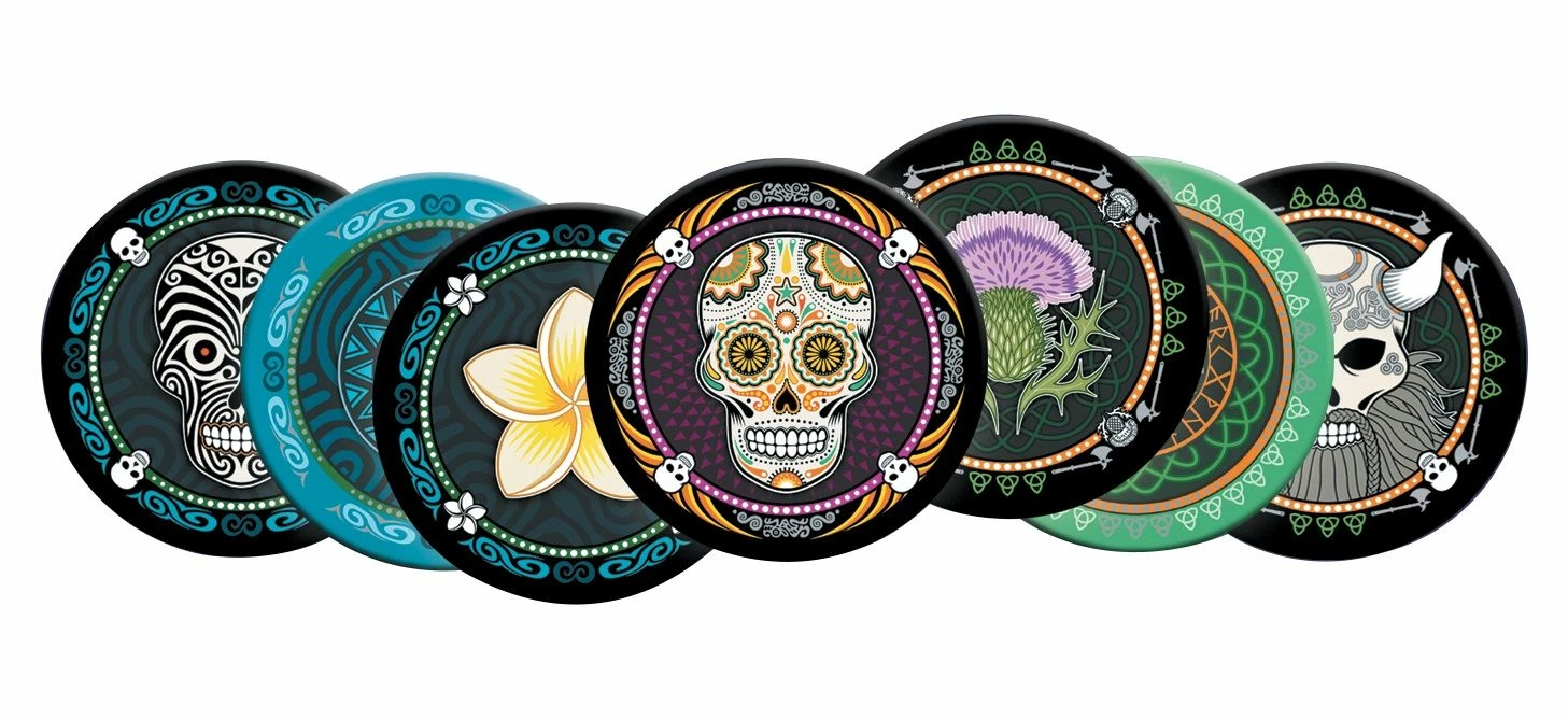 An ancient game of ornate skulls and deceptive flowers, Skull is simple to learn, but dangerously difficult to win. If you want to best your opponents, you must bluff, lie and pierce the deceptions that surround the flowers. Be wary, though—if you reveal a skull, the consequences are dire! Each turn, you may either add another disc to your pile or bet how many flowers you can reveal without revealing a skull. If you succeed at your bet, you gain a point, and two points wins the game! But you can be sure your opponents won’t just let that happen. Keep your cards to the bitter end to win this game of deception and perception.