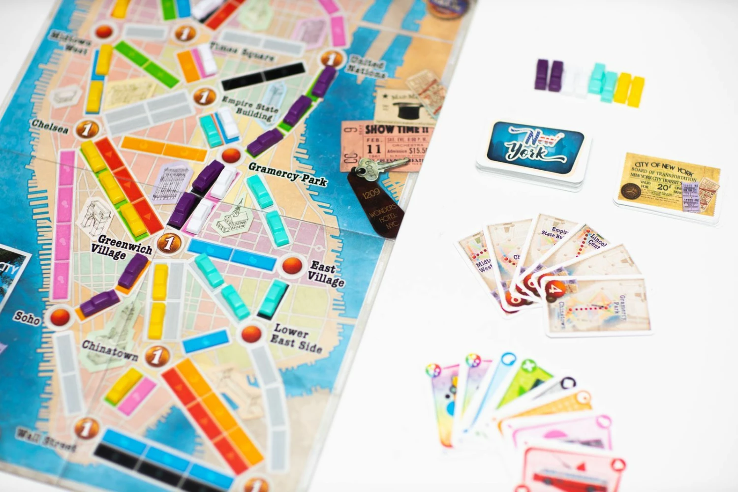 In this fast-paced Ticket to Ride game, players race one another through the busy streets of New York City to visit the most prestigious Tourist Attractions and complete their Destination Tickets. The elegantly simple Ticket to Ride gameplay appeals to both beginners and seasoned players. Learn the game in 3 minutes, play it for hours!